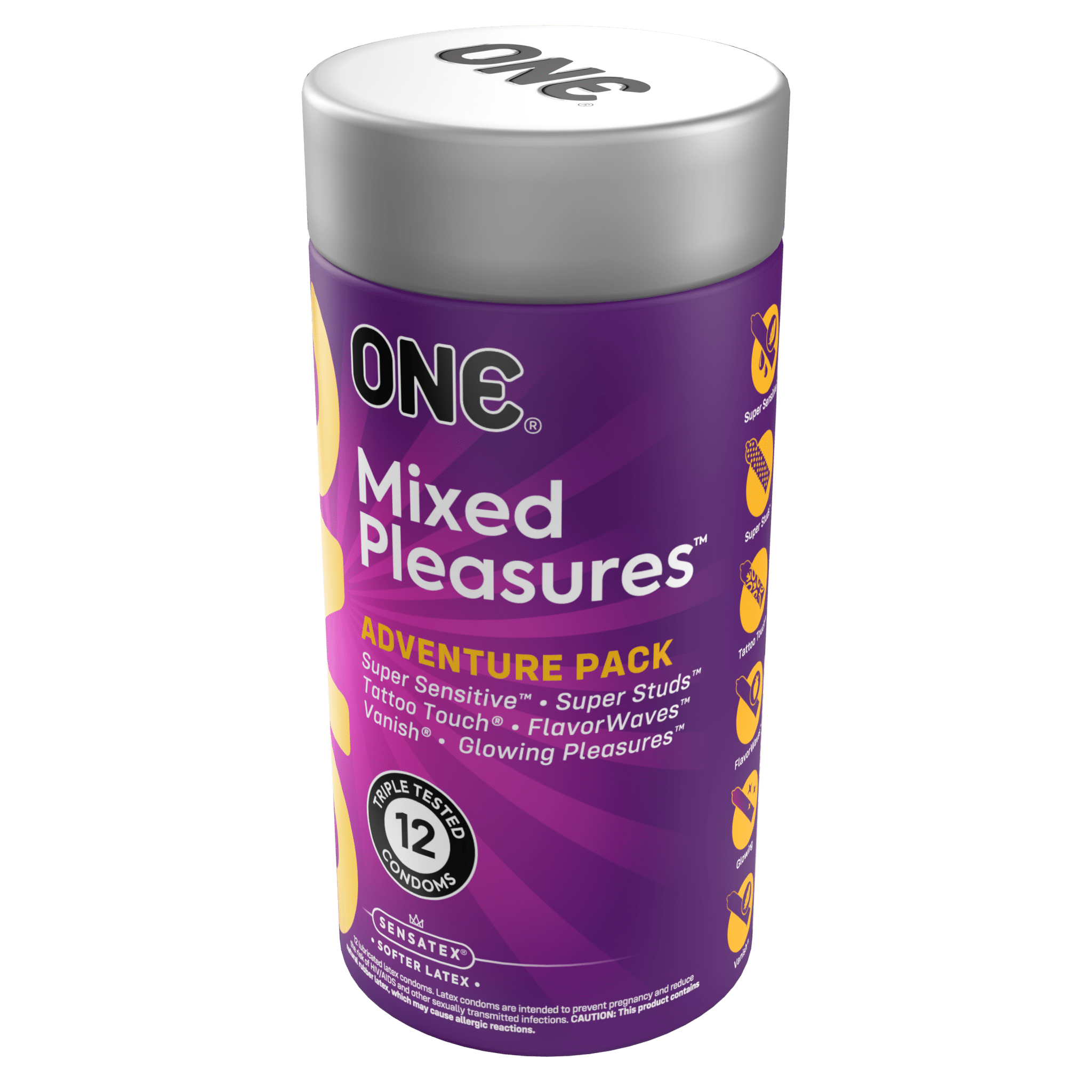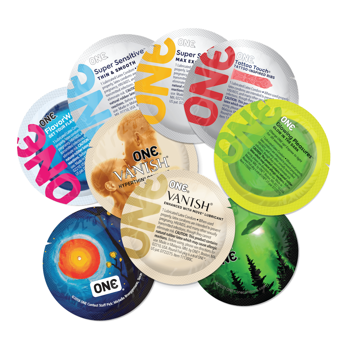 Our popular variety packs feature unique styles for adventurous experiences! All ONE® Condoms feature Sensatex® ultra-soft latex for a more natural pleasure feeling, and are vegan-friendly, non-GMO, and made with natural rubber latex.