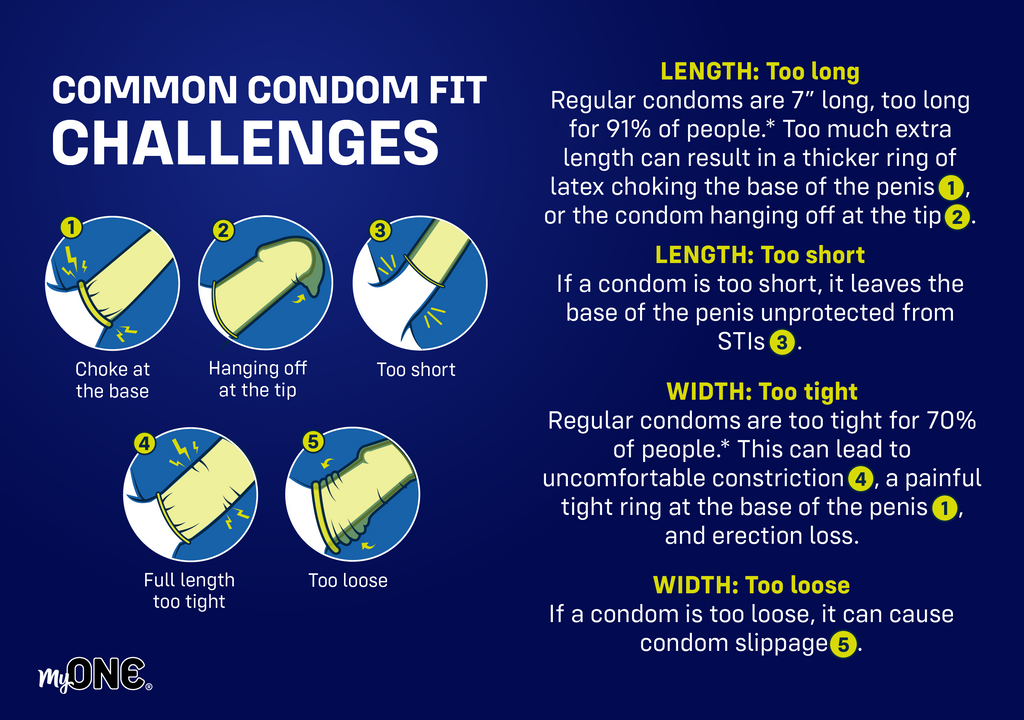According to the research findings, 96% of condom users surveyed reported at least one condom fit challenge with standard condoms. These include condoms being too loose, tight, long or short – resulting in condom slippage, squeezing and bunching, a painful red ring around their penis after sex or erection loss due to the condom being too tight. Seventy-four of respondents agreed or strongly agreed that they can’t use regular condoms because they don’t fit right. If a standard condom is simply so loose in girth that it causes slippage, or so tight that the person can’t keep an erection – it’s time to find a condom that fits properly.