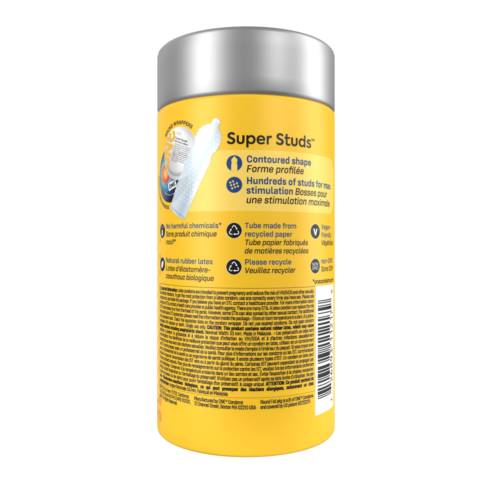 Features extra-large pleasure intensifiers for enhanced stimulation. All ONE® Condoms feature Sensatex® ultra-soft latex for a more natural pleasure feeling, and are vegan-friendly, non-GMO, and made with natural rubber latex.
