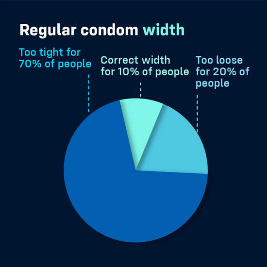 Regular condoms are too tight for 70% of people.* This can lead to uncomfortable constriction4, a painful tight ring at the base of the penis1, and erection loss.WIDTH: Too loose